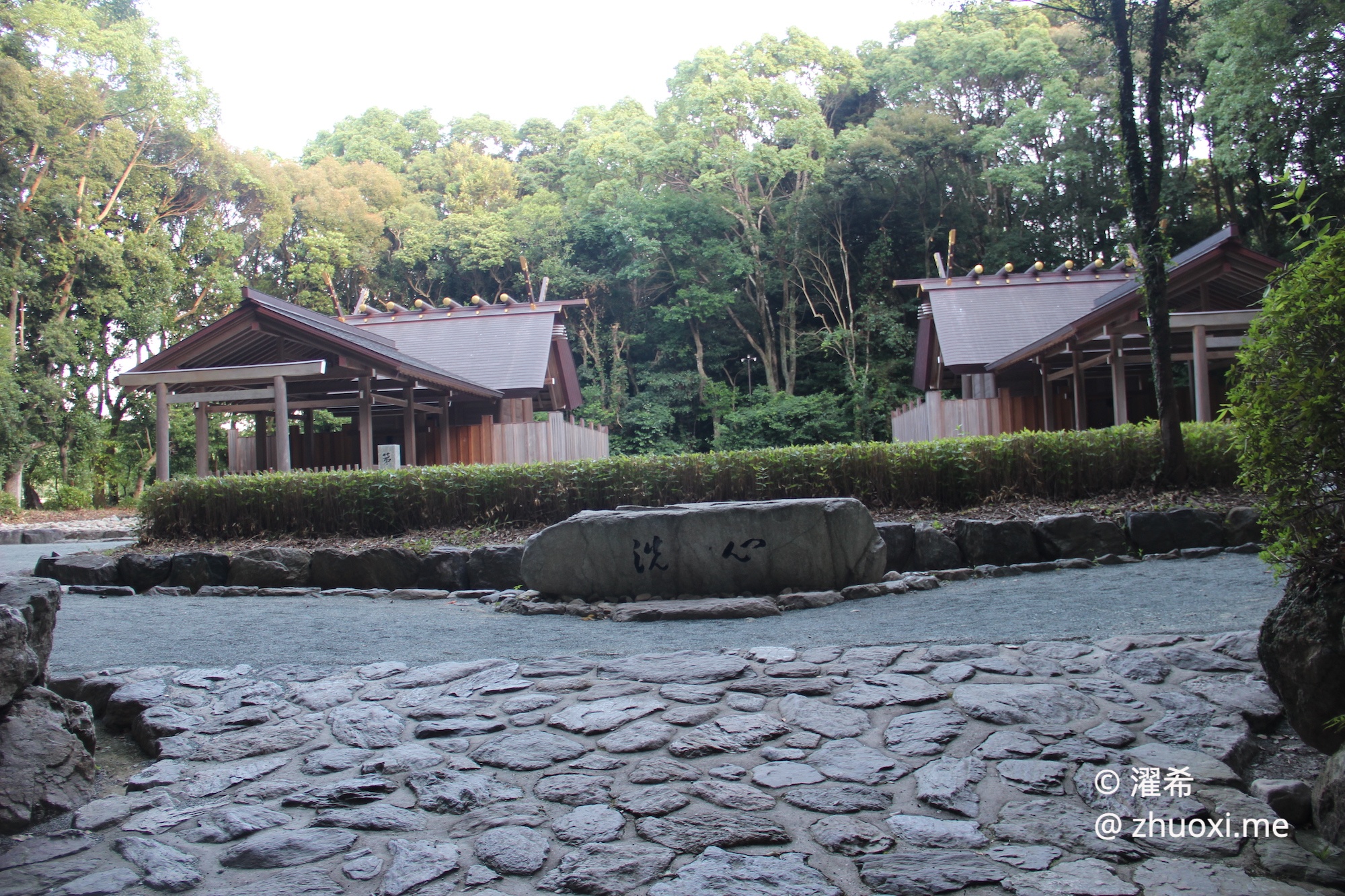 走过鸟居,看到了两个宫殿。前面的石牌上写着“洗心”。 这真是太贴切的形容了。走过这个森林秘道, 接受了蝉鸣的洗礼, 会有一个岑寂,洗尽铅华的感觉。