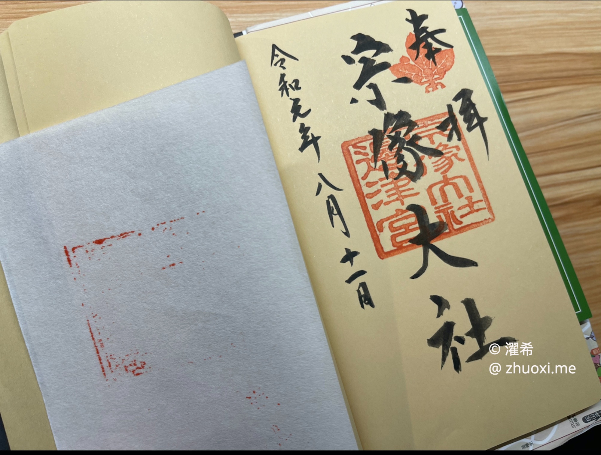 下了山,我以为已经走掉的司机已经等的不耐烦了,亲自到神社来找我们。他说这里明明十分钟就可以逛完,为什么我们逛了30分钟。他说这里不好叫车, 所以一直在等我们。 虽然很着急, 他还是推荐我去请一副御朱印。神官把御朱印递给我的时候, 我兴奋的不得了,因为是第一看到御朱印。