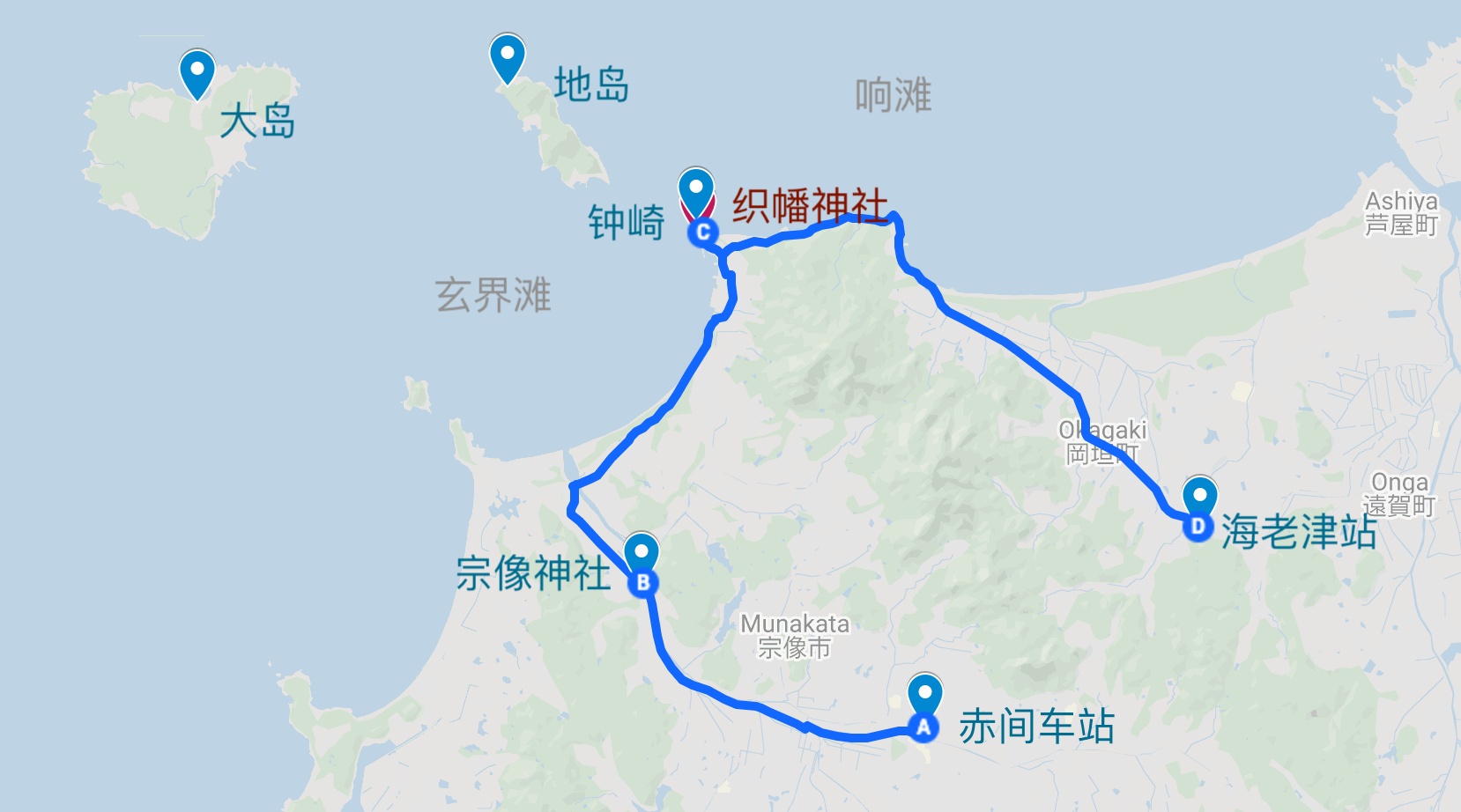 为了大概重复《交错的场景》的路线,我狠了狠心学着书里的警察,打车去转了一圈。从福冈开始,在赤间车站下次, 打车到宗像神社, 然后从宗像神社顺着海岸线,到钟崎和织幡神社,继续海岸线, 再经针江到海老津站,最后返回福冈。 这只是我的理想路线。 但是第一去日本就去乡下,在加上不懂日文, 我隐隐觉得此行不会按照计划完美执行。